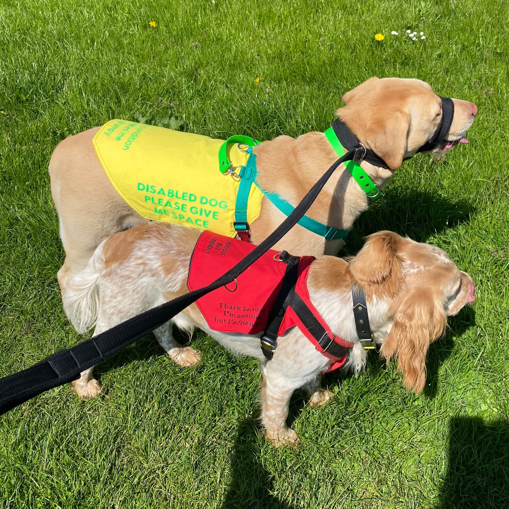 assistance dog harness has one lead attachment option and additional D rings to attach capes or handles